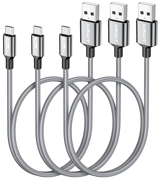 SUNGUY Micro USB Cable, 3pcs 0.5m USB A to Micro B Plug For Fast Charging and Data Sync Compatible with Galaxy S7 S6 Note 5, Nexus, PS4, MP3, HTC and other Android devices