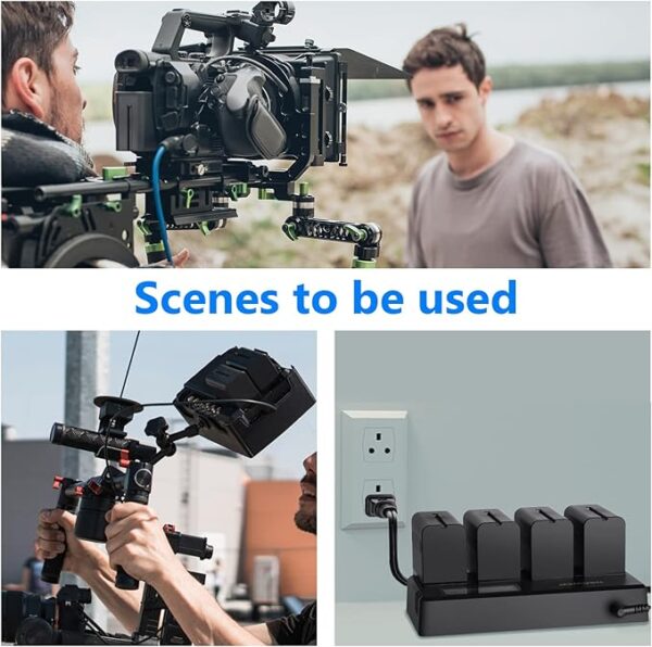 - Package includes: 4 NP-F970 battery, 1 x 4-channel battery charger, 1 x power supply, 1 x DC cable, 1 x user manual (English language not guaranteed)