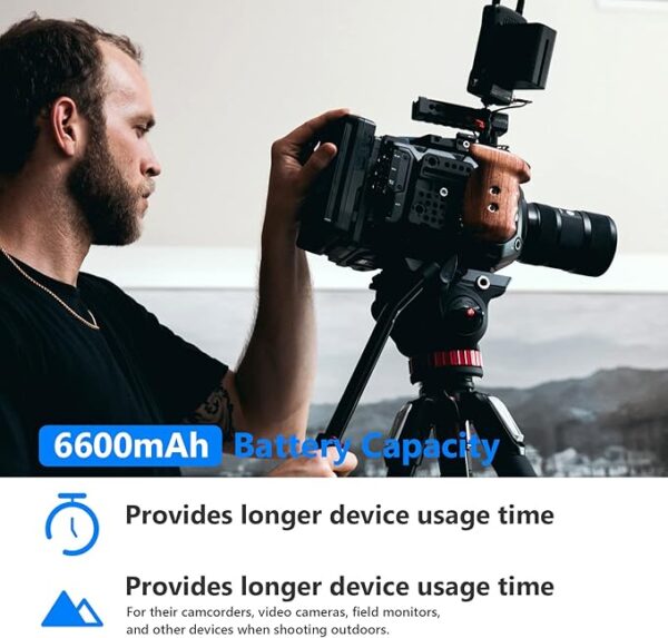 - High battery performance: Four NP-F970 batteries with 6600 mAh and high capacity provide enough battery power for your camcorder, field monitor, ring light and LED video light when shooting outdoors